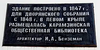 18 апреля 1848 г. в здание переехала Карамзинская общественная библиотека «для всех сословий и классов общества», арендовавшая в Доме две небольшие комнаты. Ныне эти две комнаты плюс ещё одна комната первого этажа с 1990 г. являются музеем Карамзинской библиотеки, обстановка которой сохранилась с большой достоверностью, поскольку осталось достаточно много подлинных вещей и документов той эпохи. Хотя при пожаре 1864 г. погиб весь книжный фонд, насчитывавший более 11 тысяч изданий, писатель Иван Александрович Гончаров передал ей в дар свои книги и предложил поступить так же и других литераторов, и к 1866 г., к столетию со дня рождения Карамзина Н. В. по всероссийской подписке в библиотеку поступило более 70 тысяч томов, и на её основе была создана коллекция Дворца книги.