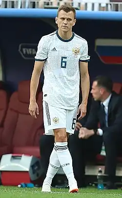 В третьем матче (Россия — Уругвай) забил автогол, Уругвай выиграл матч со счётом 3:0[60]. В плей-офф, выйдя на замену вместо Самедова во втором тайме, в матче 1/8 финала против Испании, основное время которого завершилось со счётом 1:1, реализовал четвёртый послематчевый пенальти, благодаря чему, после сейва Акинфеева, сборная вышла победителем в серии со счётом 4:3 и прошла в 1/4 финала. В четвертьфинале сборная встречалась с Хорватией. Денис Черышев снова отличился, забив первый мяч в матче, однако позже хорваты сравняли счёт; в итоге сборная России уступила в серии послематчевых пенальти 3:4, успев перед этим сравнять счёт за пять минут до конца дополнительного времени (2:2).