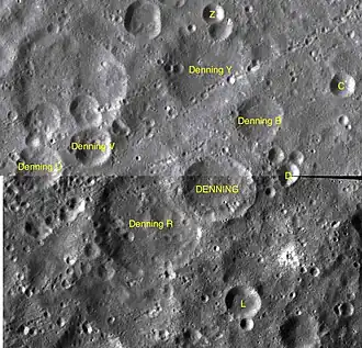 - Образование сателлитного кратера Деннинг R относится к донектарскому периоду[1].