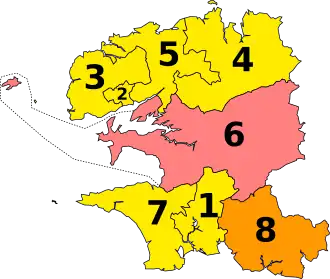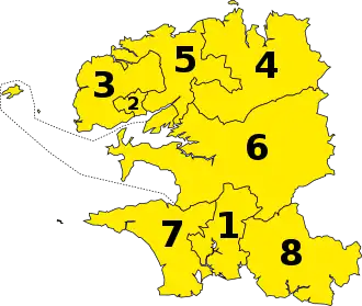 - ↑ Результаты парламентских выборов 2022 года в департаменте Финистер. Дата обращения: 7 марта 2023. Архивировано 7 марта 2023 года.