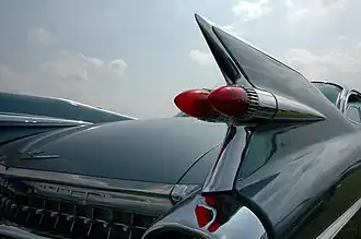 Именно в 1959 году появился автомобиль, ставший символом всего стиля в целом — 1959 Cadillac, имевший очень высокие и чётко выделяющиеся хвостовые «кили», а также необычайную, сложнейшую решётку радиатора с хромированными имитациями огранённых драгоценных камней.