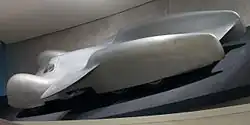 В послевоенные годы эта стилистика развилась в так называемый «понтонный» стиль, у выполненных в рамках которого автомобилей передние и задние крылья как самостоятельный элемент формы либо полностью отсутствовали, будучи заменены на «понтон» — выступающий из боковины кузова единый объём с гладкой поверхностью, либо представляли собой декоративные выштамповки на поверхности того же «понтона». Данная форма кузова была очень рациональна с точки зрения компоновки и других практических соображений, однако для неё долгое время не удавалось добиться удовлетворительного дизайнерского оформления, сочетающего техническую целесообразность с эстетической привлекательностью. В частности, одним из её недостатков с точки зрения технической эстетики была излишняя визуальная массивность задка кузова, обусловленная тем, что расположенная между правым и левым «понтонами» крышка багажника, которой из соображений достижения наибольшей вместимости багажного отделения придавали выраженную выпуклую форму, образовывала своего рода узкий и высокий «горб», доминирующий над остальной задней частью автомобиля и создающий впечатление её большой высоты, в то время как в моду входили более низкие автомобили, создающие впечатление лёгкости и стремительности.
