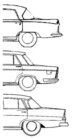 Mercedes-Benz W111 'Hekflosse': низкие, узкие остроконечные плавники