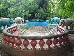 Отличительной особенностью детского сада является летний плескательный бассейн. Он имеет ограждение из балясин гротескной формы. Около ступеней бассейна установлены четыре крупные фигуры слонов[6][3]. Слоны были выкрашены в розовый цвет, поэтому в народе детский сад называли «родиной розовых слонов»[13][14].