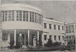 В архитектуре здания сочетается конструктивизм и сталинская неоклассика[12]. Для конструктивизма характерны полукруглый ризалит на фасаде с большими квадратными окнами, а также асимметричная планировка здания с просторными помещениями. При этом в оформлении фасадов здания использованы декоративные детали, свойственные сталинской архитектуре: пилястры, замковые камни, украшенные листом тропического растения аканта, а также ложные балконы с балясинами и профилированные карнизы[3].