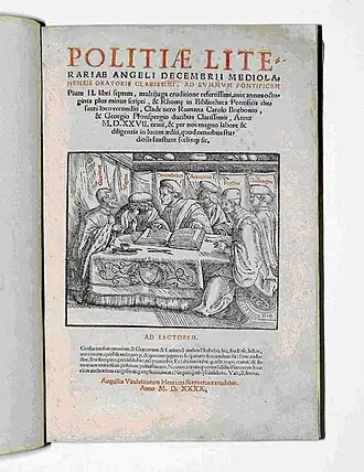 - Angelo Camillo Decembrio De politia litteraria