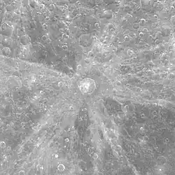 Кратер сформирован импактом под низким углом с северо-западного направления и является центром яркой асимметричной системы лучей. Наиболее интенсивные лучи лежат в пределах секторов с углом приблизительно 90 градусов в северо-восточном и юго-западном направлении и распространяются на сотни километров от кратера. Узкий сектор лучей исходит в южном-юго-восточном направлении.