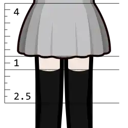 Идеальным соотношением длины мини-юбки, открытой части бедра и надколенной части гольфов считается 4 : 1 : 2,5[3] с допуском 25 %[4][5].