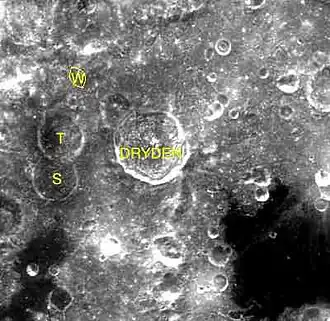 - Образование сателлитных кратеров Драйден S, T и W относится к нектарскому периоду[1].