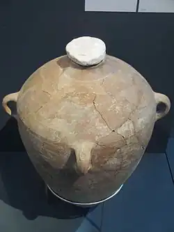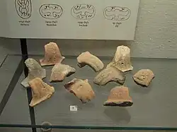 Печати ставились на сырой глине перед обжигом в печи. На ручках этих кувшинов были вырезаны также некоторые другие знаки: