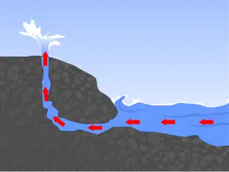 Если дыхало расположено на берегу моря или океана и связанная с ним пещера имеет выход в воду на уровне воды или чуть выше него, то при определённых условиях, таких как геометрия хода, сила волнения на море, общие погодные условия и др., из отверстия дыхала под большим давлением вырываются фонтаны воды (столб воды может подниматься до 25 метров[2]), что часто привлекает множество туристов. Подобные достопримечательности встречаются по всему миру: в Вест-Индии, Океании, на Шри-Ланке и Гавайях, в Испании (так называемые бюфоны в Астурии). Мощнейшим дыхалом такого типа считается Киама в Австралии, а второе место занимает Ла-Буфадора в Мексике[3].