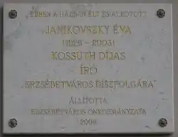 - ↑ Tradíciók - Hírességeink - Janikovszky Éva Архивная копия от 9 декабря 2014 на Wayback Machine, tomorkenygimn.hu