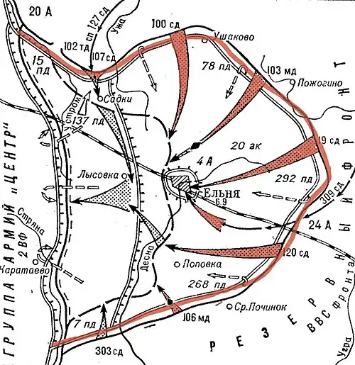 Она началась наступлением двух армий (24-й и 43-й) советского Резервного фронта (комфронта генерал армии Г. К. Жуков). Завершилась освобождением города Ельни и ликвидацией ельнинского выступа.