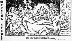 Впервые опубликовано в первом номере московского журнала пролетарской сатиры «Соловей» 6 января 1918 года (24 декабря 1917 года по старому стилю)[1]. Оно сопровождалось карикатурой, изображающей богатое застолье.