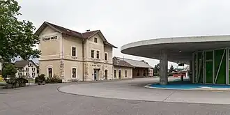 Станция, расположенная в центре города, состоит из двухэтажного здания, деревянного сарая и платформы, обслуживающей первую колею. Второй путь не имеет платформы и используется редко[1]. На платформе расположена железнодорожная ветка, которая является частью демонтированной системы путей, используемой грузовыми вагонами[2].