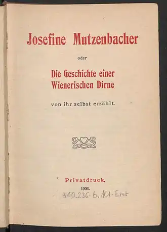«Жозефина Мутценбахер — История жизни венской проститутки, рассказанная ею самой» (нем. Josefine Mutzenbacher oder Die Geschichte einer Wienerischen Dirne von ihr selbst erzählt) — эротический роман.