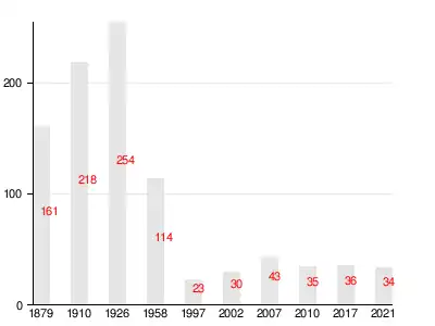 | 1879 | 1910 | 1926 | 1958 | 1997 | 2002 | 2007[14] |