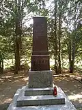В центре кладбища на ступенчатом гранитном постаменте расположен 3-метровый обелиск с пятиконечной звездой, с надписью «1945» и текстом на русском языке: «Вечная слава героям, павшим в боях за свободу и независимость нашей Родины».