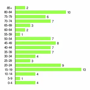 | Жителей | 514 | 572 | 579 | 240 | 210 | 131 | 98 |