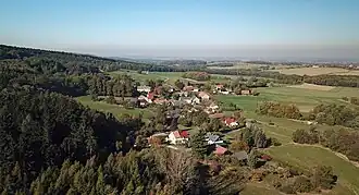 Соседние населённые пункты: на северо-востоке — деревня Блоцаны, на востоке — деревня Лейно и на западе — деревня Вуежк-под-Чорнобогом[2].