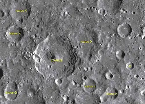 - ↑ Кратер Икар на карте LAC-86. Дата обращения: 5 июля 2020. Архивировано 20 февраля 2013 года.