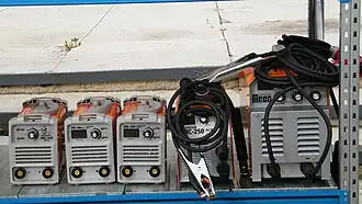 Сварочный инвертор представляет собой силовой трансформатор для понижения напряжения сети до необходимого напряжения холостого хода источника, блок силовых электрических схем, в основу которых заложены транзисторы MOSFET или IGBT и стабилизирующего дросселя для уменьшения пульсаций выпрямленного тока. Принцип действия инверторного источника сварочной дуги следующий: сетевое переменное напряжение подается на выпрямитель, после которого силовой модуль преобразует постоянное напряжение в переменное с повышенной частотой, которое подается на высокочастотный сварочный трансформатор, имеющий существенно меньшую массу, чем сетевой, напряжение которого, после выпрямления, подается на сварочную дугу. Дуга на постоянном токе более устойчива.