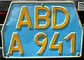 Выполняются номера жёлтыми символами на синем фоне, форматы номеров: