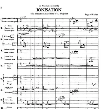 - ↑ François, Jean-Charles (Winter 1991). Organization of Scattered Timbral Qualities: A Look at Edgard Varèse's Ionisation. Perspectives of New Music. 29 (1): 48–79. doi:10.2307/833066. JSTOR 833066.