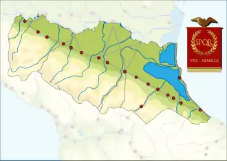 Римляне завоевали Эмилию в третьем веке до нашей эры и построили там (в 187 г. до н. э.) важную дорогу, Виа Эмилия, благодаря Марку Эмилию Лепиду, а Октавиан Август объединил Эмилию с Лигурией. Вдоль дороги возникли города Модена (Mutina), Пьяченца (Placentia) и Реджо (Regium Lepidi), а Парма (Parmam) и Болонья (Bononia) расширились. Во время владычества Рима Эмилия радикально изменилась: леса были вырублены, чтобы снабжать столицу древесиной, болота были осушены, а низины освоены. Следы римского владычества присутствуют по всей Эмилии, в частности, недалеко от Пьяченцы, где находятся археологические раскопки древнеримского города Веллея (ит.).