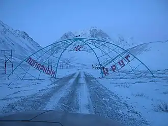- На 24-м километре автодороги установлена арка в месте пересечения трассы Полярным кругом. Арка представляет собой дугообразное сооружение из металлических труб в виде пересекающихся параллелей и меридианов синего цвета с красной надписью металлическими буквами «Полярный круг» и красным флажком в районе Северного полюса. Рядом с аркой находятся развалины двух домов из дикого камня, в которых жили начальство и охрана во времена строительства трассы заключёнными. На другой стороне дороги видны остатки лагеря.