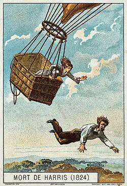 - 25 мая 1824 г. — лейтенант Томас Харрис, изобретатель клапана для выпуска газа из воздушного шара, погиб при падении шарльера из-за неконтролируемой утечки водорода. Его спутница получила тяжёлые травмы, но осталась жива.