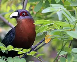 Каштановогрудая кустарниковая кукушка[1] (лат. Phaenicophaeus curvirostris) — вид птиц из семейства кукушковых. Выделяют 5 подвидов[2]. Область распространения — южный Индокитай и острова Юго-Восточной Азии. Благодаря своей яркой окраске часто содержится в зоопарках, однако, как и другие кукушки, в неволе не размножается[3].