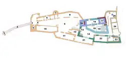 В западной части комплекса находилась просторное жилое здание. В нём находится так называемый рыцарский зал. Он имеет потолок опирающийся на деревянные балки и двойные окна. К этому зданию примыкает бергфрид, который возвышается у единственных ворот, ведущих в замок.