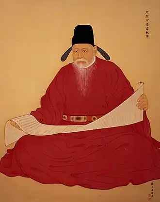 Ким Бусик (кор. 김부식, 金富軾)[4] — корейский историк и государственный деятель. Автор официальной династийной истории «Самгук саги», посвящённой истории Кореи эпохи Трёх государств. Был родом из аристократической семьи, чьи предки были родственниками королевскому семейству Силла. Родился в 1075 году в столице Силла Кёнджу. В 1096 году поступил на службу.