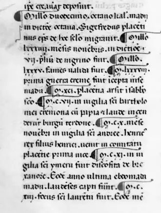 - Chronicon Placentinum (парижское издание 1856 г. под редакцией Ж.-Л. А. Юйяр-Бреоля)
