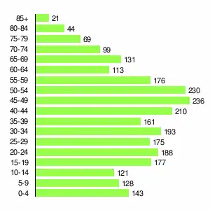 | Жителей | 1313 | 1496 | 1675 | 2152 | 2780 | 2795 | 3130 | 3043 | 2615 |