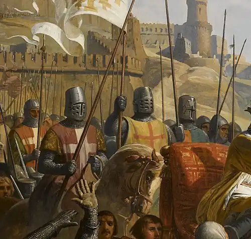 Картина французского художника Ларивьера, на которой изображена Битва при Монжизаре между силами Иерусалимского королевства и армией айюбидов во главе с Салах ад-Дином, в которой крестоносцы одержали победу