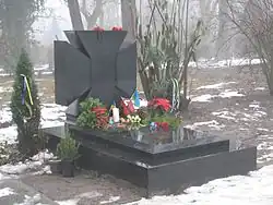На кладбище находится могила командира Украинских сечевых стрельцов, коменданта Украинской войсковой организации и главы Проводу Организации украинских националистов Евгения Коновальца. Могила расположена справа от центрального входа на краю кладбища с видом на реку. Похороны Коновальца состоялись 28 мая 1938, на них присутствовали несколько членов ОУН, а также посол Литвы в Нидерландах (у Коновальца было литовское гражданство). Обряд отпевания провёл католический священник-голландец. Коновалец был похоронен в цинковом гробу, поскольку националисты планировали перезахоронить его на Украине после восстановления её независимости.