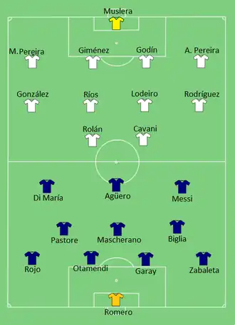- ↑ Uruguay's Cristian Rodríguez claims MasterCard Man of the Match award. Copa América Chile 2015 (13 июня 2015). Архивировано 15 июня 2015 года.