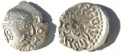 Кумарагупта также чеканил серебряные монеты, которые были в основном предназначены для распространения в западной части империи Гуптов. В отличие от золотых монет, где была сделана попытка показать деятельность правителей, серебряные монеты были более-менее просто стандартные без учета фактических взглядов правителя.[1]