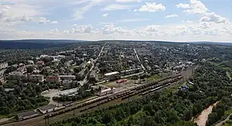 Одноимённая железнодорожная станция соединяет город с Губахой, Чусовым, Березниками, Лысьвой, Соликамском, Пермью. В границах города также есть станция Обогатитель и остановочный пункт Технический (до 2021 года — 116 км)[33].