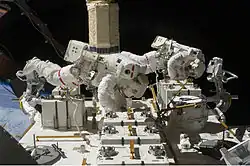 Общая продолжительность внекорабельной деятельности (ВКД) за 3 выхода — 18 часов 05 минут. Продолжительность полёта в космос — 15 дней 16 часов 45 минут.