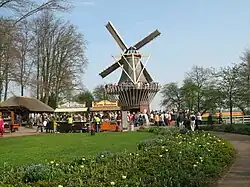 На территории парка примечательна ветряная мельница. Она была построена в 1892 году в нидерландском городе Гронингене. Первоначальной целью было использование мельницы для откачки воды из польдера. В 1957 году фирма «Holland American Line» выкупила эту мельницу и передарила её в Кёкенхоф, где в 2008 году с ней были проведены реставрационные работы. С тех пор она располагается на территории парка как музей под открытым небом, и каждый желающий может наблюдать за внутренним устройством классической нидерландской мельницы.[3]