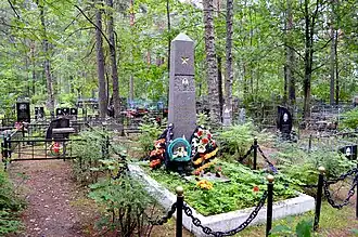 - Похоронен в Приозерске. В посёлке Чагода установлен памятник, в Приозерске — обелиск.