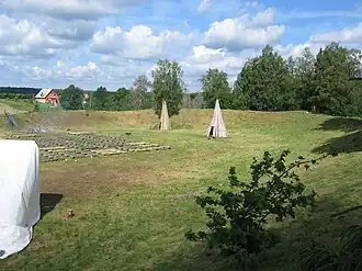 Территория бывшего форта со скамейками для слушателей певческих представлений