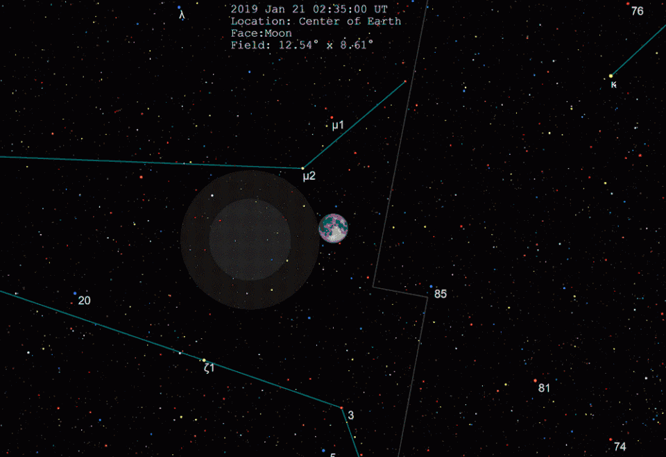 - Hermit Eclipse: Total Lunar Eclipse of 21 Jan, 2019 AD (англ.)