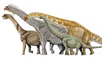 - ↑ Upchurch, P. (1998). "The Phylogenetic relationships of sauropod dinosaurs". Zoological Journal of the Linnean Society 128(1): 43—103.