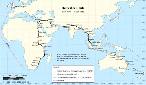 - ↑ W.H. Legg, «Aspects of the Horseshoe Route», Air Mail News, vol. 45, pp. 44 — 53, May 2002, Pub. British Air Mail Society