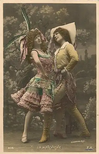 Публика вводилась в заблуждение красочными открытками под названием La Mattchiche, изображавших заимствованные из театральных постановок фигуры «нового салонного танца».