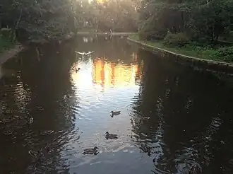 В верхней части пруда через ложбины пешеходные мостики из камня с металлическими перилами. Пруд — излюбленное место прогулок местных жителей.